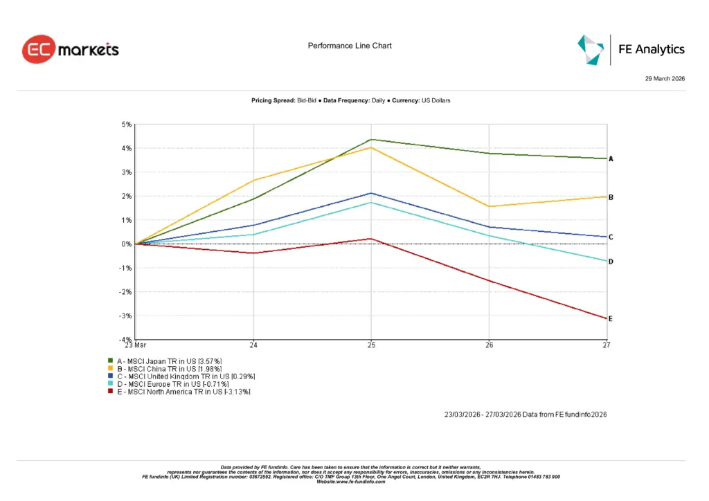 Source: FE Analytics. All indices total return in USD. Past performance is not a reliable indicator of future performance. Data as of 27 March 2026.