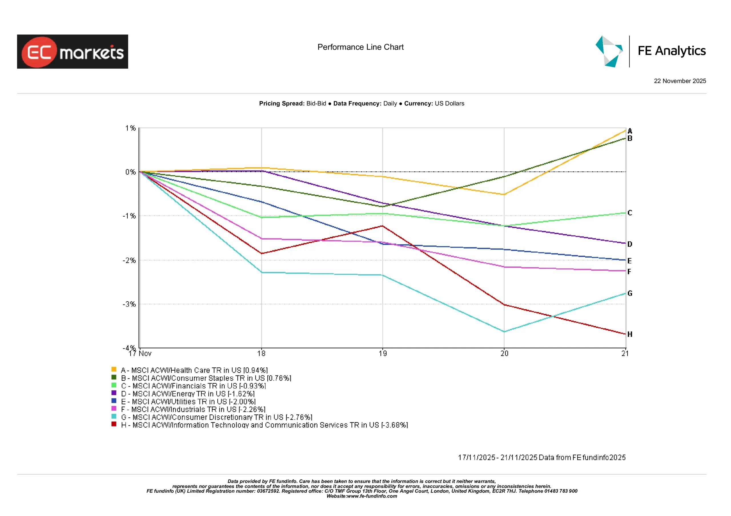 Earnings and geopolitics also shape the picture. Nvidia’s guidance stirred volatility, and other tech names could follow. OPEC’s 30 November meeting may impact oil sentiment. UK fiscal plans, likely featuring tax hikes, could influence the pound and bond markets.