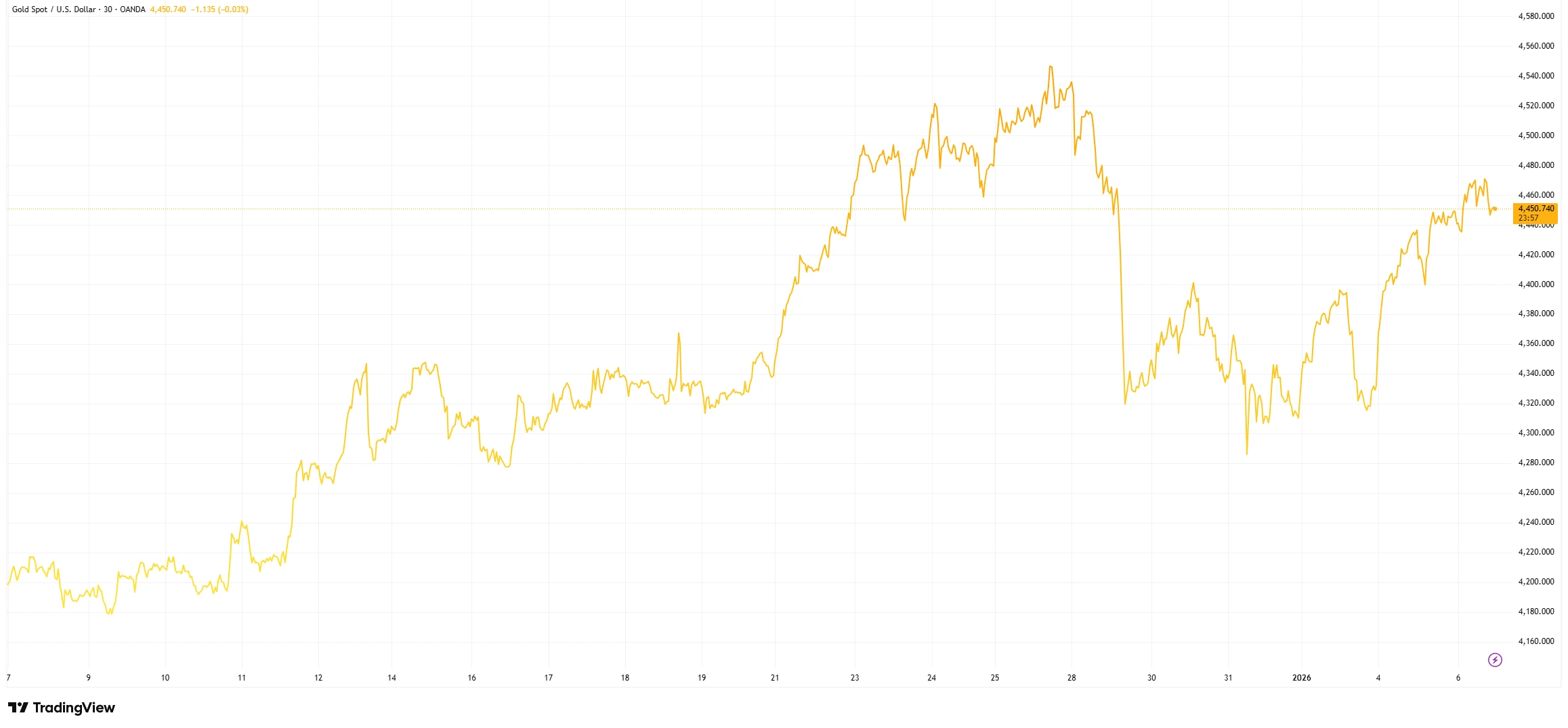 Gold Prices Hold Near Recent Highs (30-Day View)