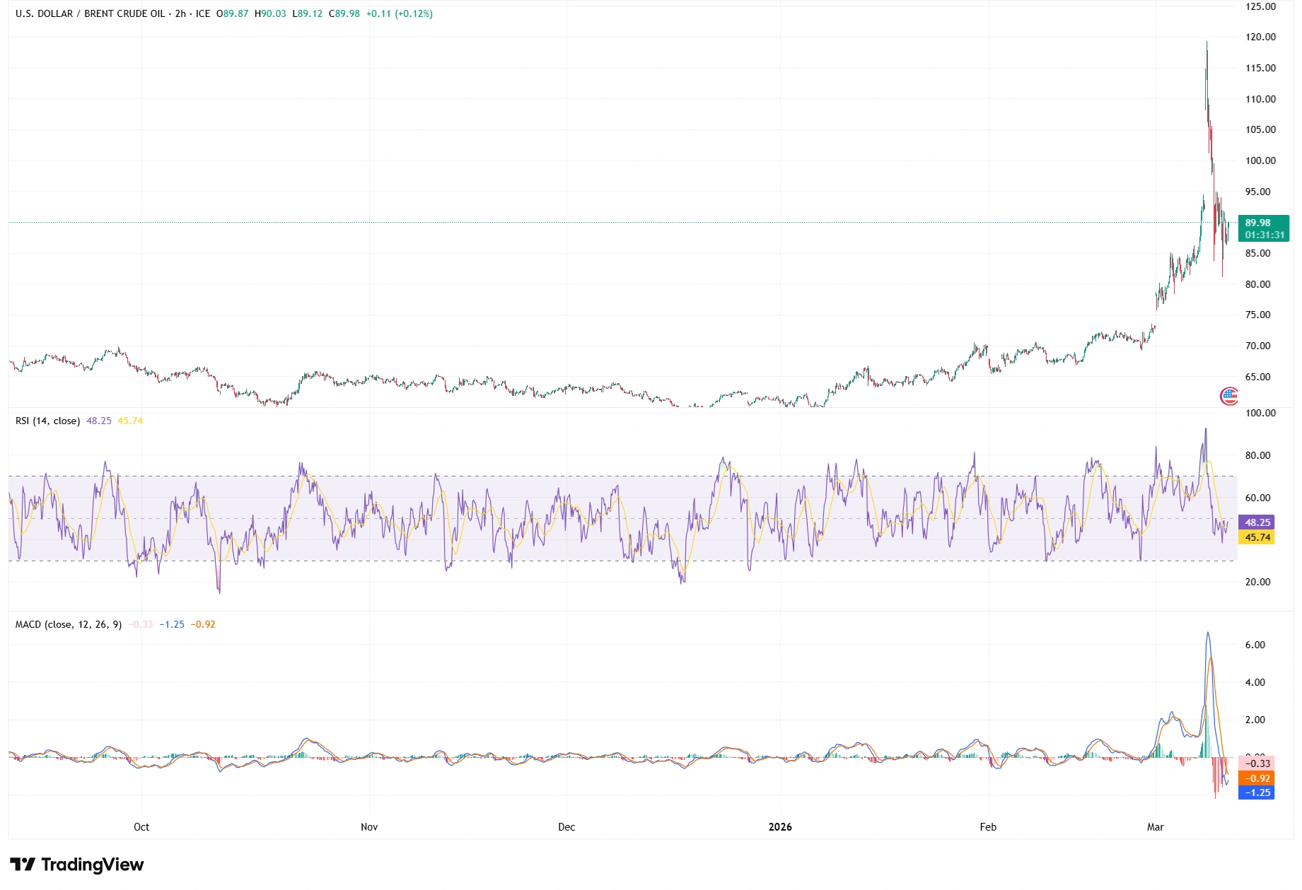 Brent Crude 2H Chart: Compression, Spike, and Reversal