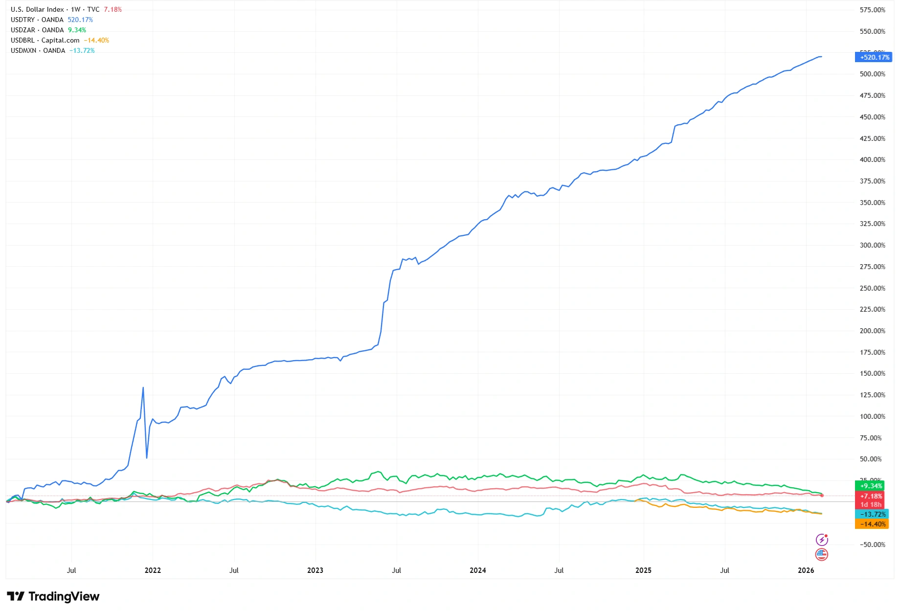 이 때문에 강달러 국면은 종종 개발도상 지역의 통화 압박을 동반하며, 국내 여건이 이를 정당화하지 않더라도 중앙은행이 금리를 인상하도록 압박합니다.