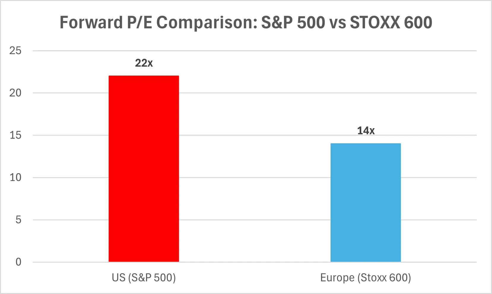 Comparativo P/L Futuro: S&P 500 vs STOXX 600