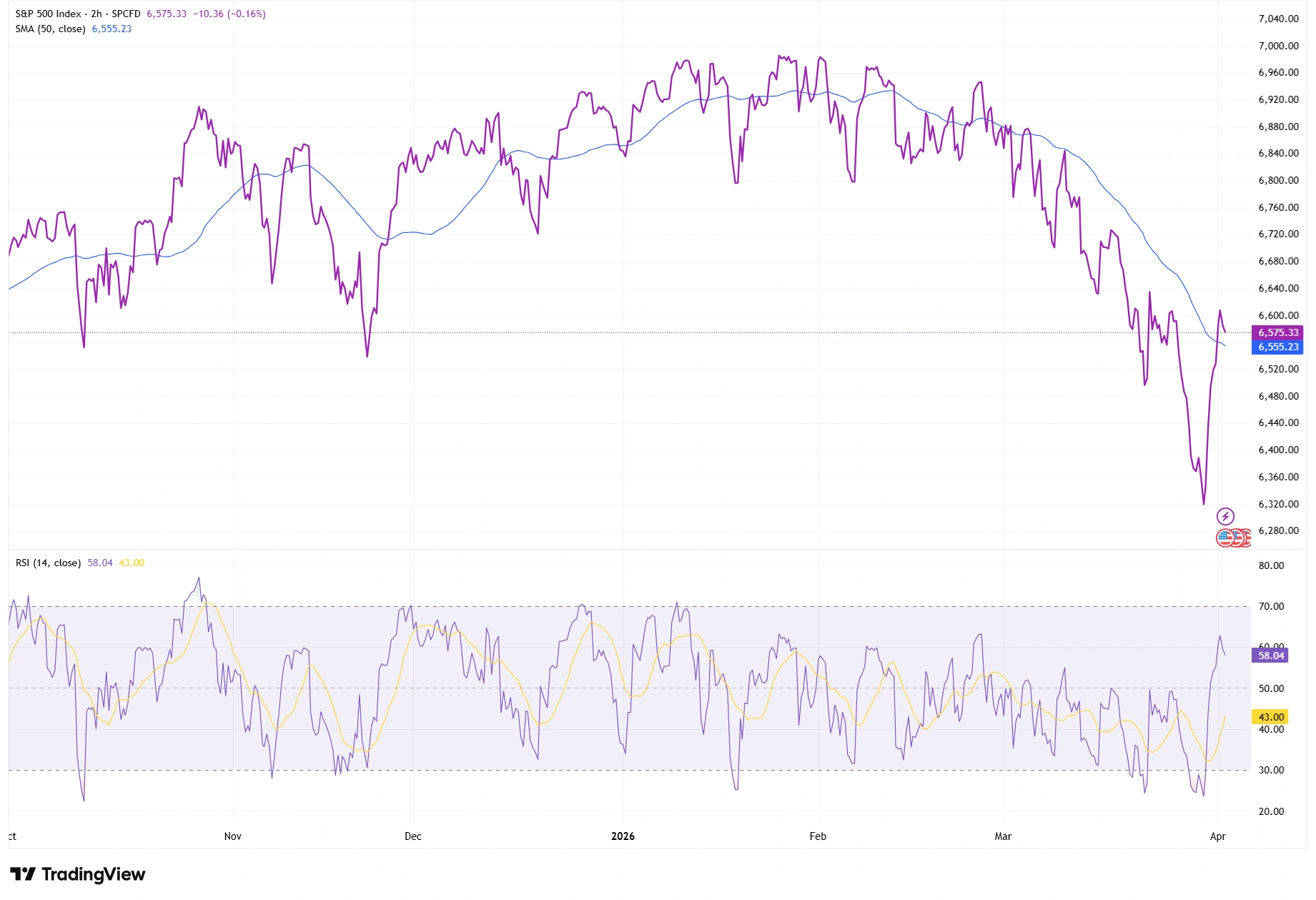 ดัชนี S&P 500 ยังคงอยู่ในแนวโน้มขาขึ้นในระยะยาว แต่พฤติกรรมราคาล่าสุดแสดงให้เห็นว่าสัญญาณแรงส่งเริ่มชะลอลง กราฟแสดงให้เห็นอย่างชัดเจน: ดัชนีประสบปัญหาในการทำจุดสูงสุดใหม่ที่มีนัยสำคัญตั้งแต่ปลายเดือนมกราคม และการปรับตัวลงในเดือนมีนาคมแสดงถึงการเปลี่ยนแปลงไปสู่การเคลื่อนไหวของราคาที่ช้าลงและไม่สม่ำเสมอมากขึ้น
