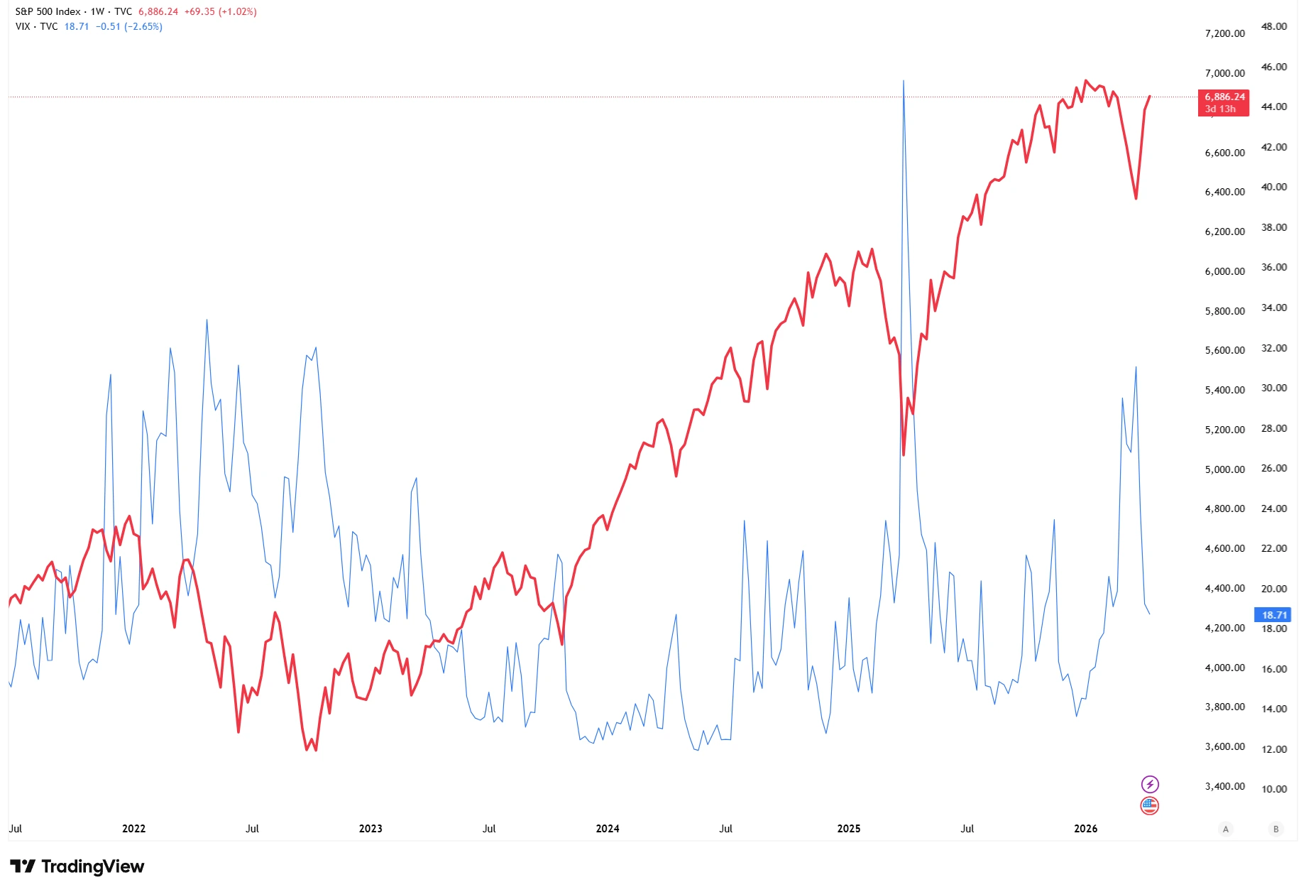 VIX通常在市场压力时期上升,往往与股市下跌同时出现,因为投资者要求更高的风险溢价。