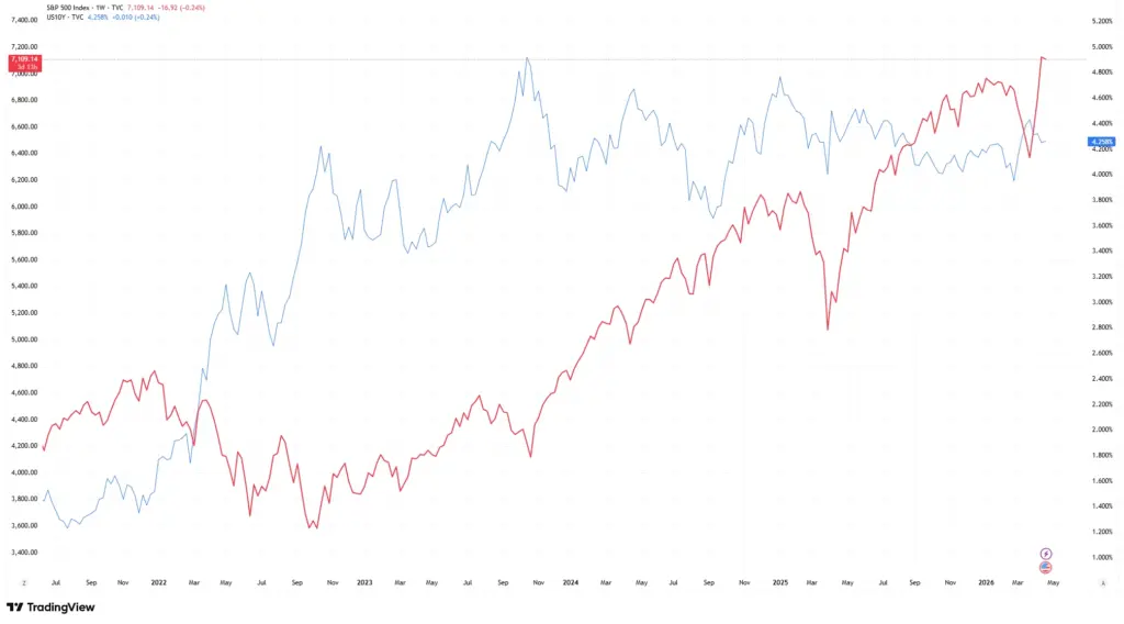 S&P 500 与美国10年期国债收益率